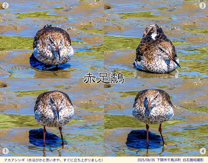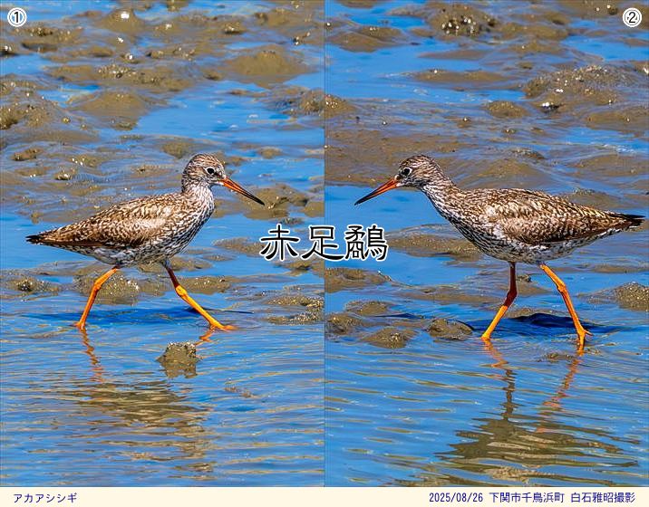 2025/08/26 赤足鷸 2025/05/23 山翡翠  2025/08/26 赤足鷸  2025/08/19 目大千鳥と当年