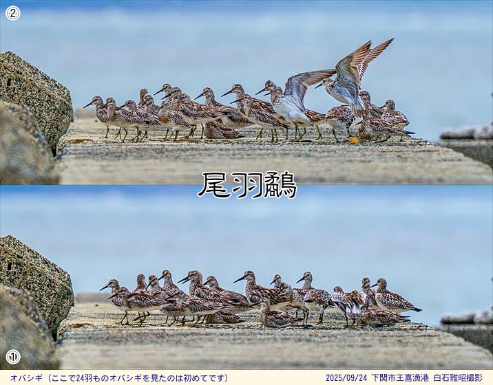2025/09/24 尾羽鷸 2025/10/15 菱喰  2025/09/24 尾羽鷸  2025/09/28 雲雀鴫