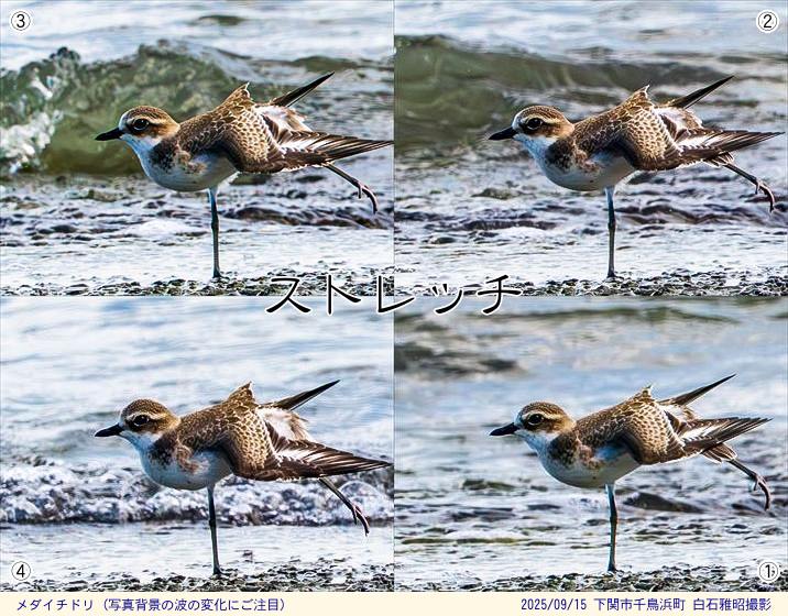 2025/09/15 ストレッチ 2025/09/07 飛び立ち  2025/01/18 首振り  2025/01/18 採餌