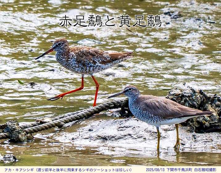 2025/08/26 赤足鷸 2025/05/23 山翡翠  2025/08/26 赤足鷸  2025/08/19 目大千鳥と当年