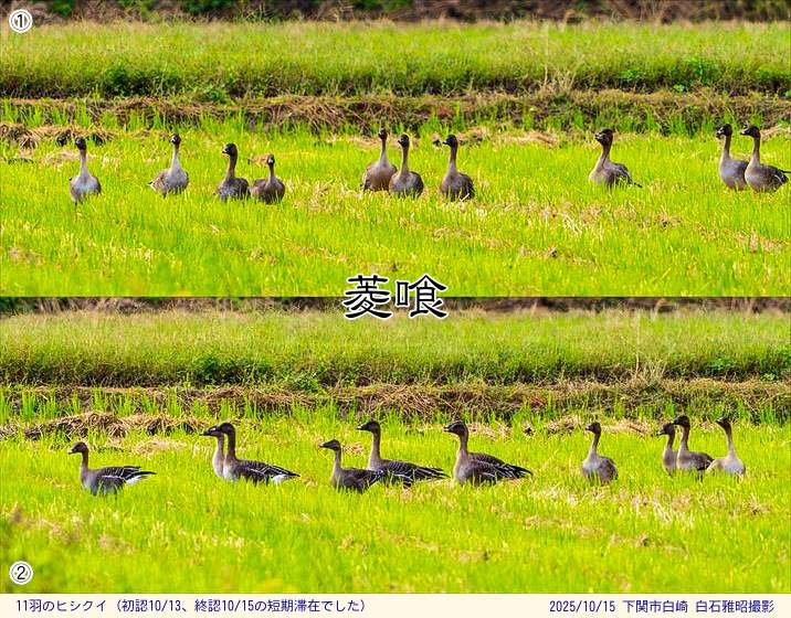 2025/09/24 尾羽鷸 2025/10/15 菱喰  2025/09/24 尾羽鷸  2025/09/28 雲雀鴫